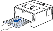 Sortez complètement le bac à papier de l’appareil. À l’arrière de l’appareil, sortez entièrement le bac recto verso de l’appareil. Retirez le papier coincé de l’appareil ou du bac recto verso. Enlevez le papier éventuellement coincé sous l’appareil du fait de l’électricité statique. Si le paper n’est pas entraîné à l’intérieur du bac recto verso, ouvrez le capot arrière. - AVERTISSEMENT