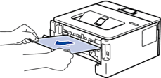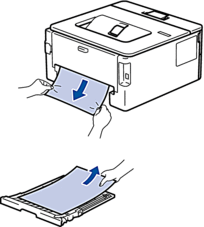 Utilisez vos deux mains pour sortir délicatement le papier coincé à l’arrière de l’appareil. Fermez le capot arrière jusqu’à ce qu’il soit bloqué en position fermée.