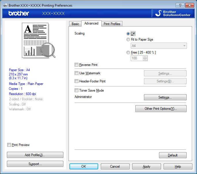 | HL* | > Alterar o tamanho e o tipo e papel |