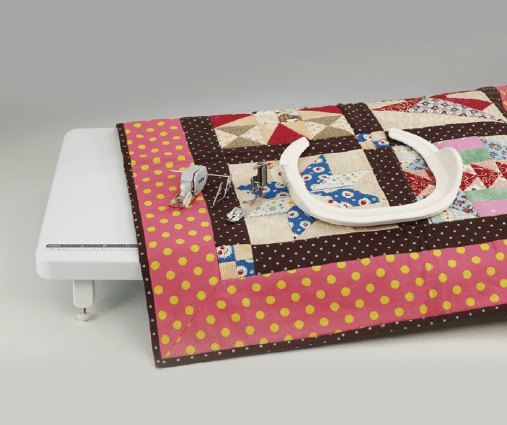 For guiding fabric edge with an accurate 1/4”, 1/2” or 5/8” (approx. 6.5, 13 or 16 mm) seam