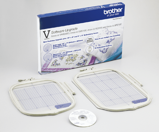 Expanded embroidery area to 12” x 8” (300 x 200 mm) and additional frames with program update