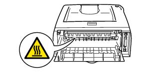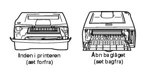 Hvis du lige har brugt printeren, er visse dele inden i printeren meget varme. Når du åbner kabinetlåget foran eller bag på printeren, må du aldrig røre ved de dele, som er vist med gråt på tegningen.