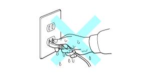 Rør ikke ved stikket med våde hænder. Dette kan forårsage elektrisk stød.